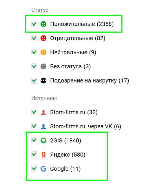 Мы можем регулярно импортировать отзывы из других источников (Яндекс, Google, 2GIS и группы «ВКонтакте») и отображать их на странице вашей компании.